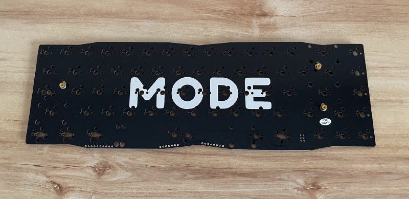 Mode offers both Hotswap and Solderable PCBs. I chose the Hotswap version and this has limited multi-layout capabilities (stepped Capslock and 7u spacebar). The PCB contains three standoffs built into it.