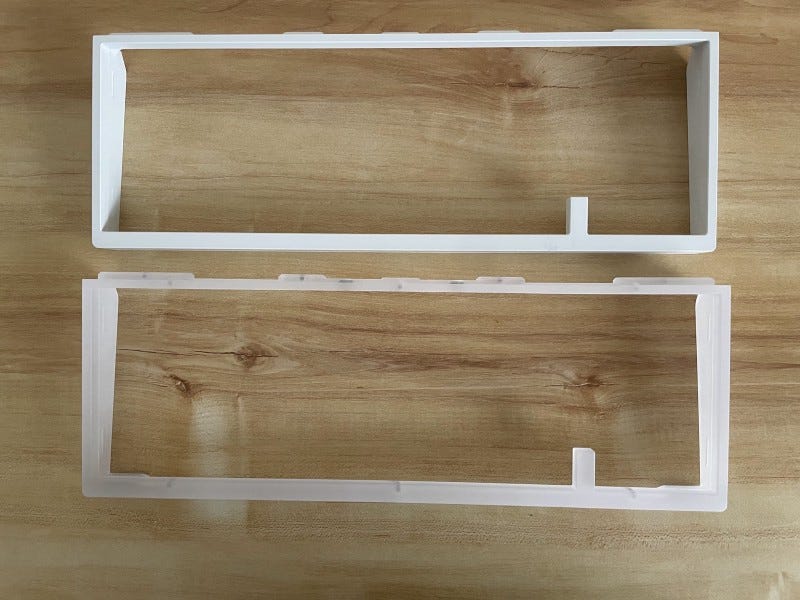 Mode offers seven different tops and I chose the White and PC ones. The white is Electrophoresis-coated aluminum and the PC is CNC-machined and sandblasted clear polycarbonate. The top is a major part of the kit as the PCB-Plate assembly is screwed onto it in the top and isolated top mount styles, and the PCB-Plate assembly is slid into it in the stack mount style.